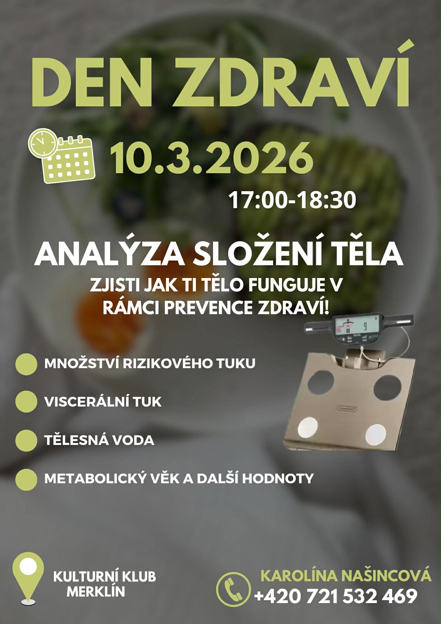 Den zdraví - analýza složení těla. Zjistěte jak Vám tělo funguje v rámci prevence zdraví.